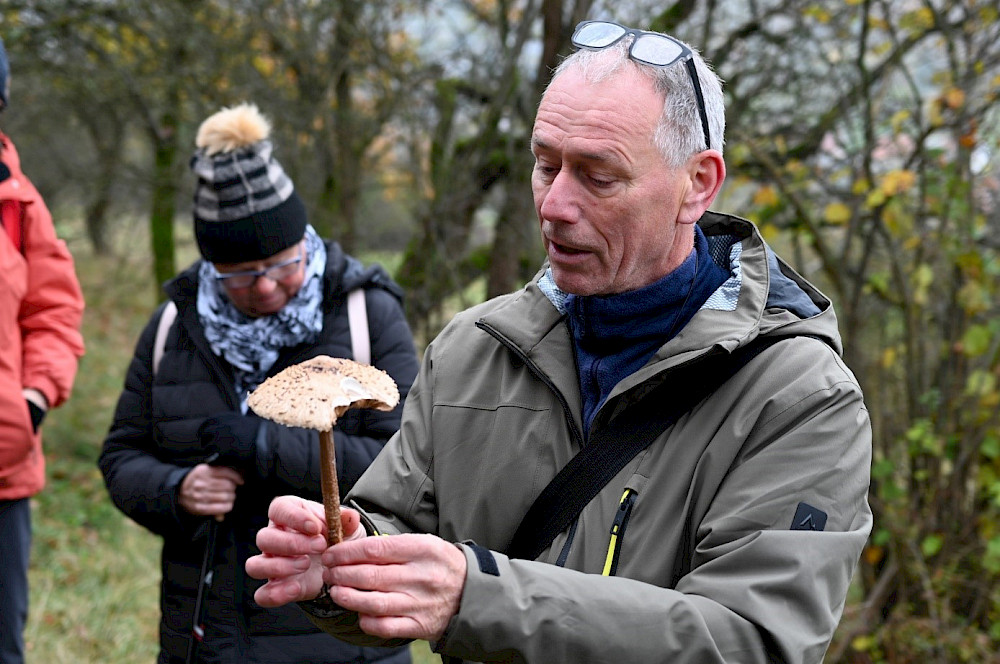 Nach 7 Jahren war es wieder einmal so weit. Das Entdeckerteam aus Langenholzen lud zu einer Pilzwanderung unter der Führung vom Pilzsachverständigen Günther Schier aus Dassel ein. Alexander Wirth begrüßte die ca. 30 Teilnehmer am Entdeckerturm und stellte einleitend Statistiken über Pilzkenntnisse unserer Bevölkerung aus dem artenpisa Projekt von NABU Naturgucker vor. Dies zeigte, dass ein großes Interesse vorhanden, aber das Wissen über Pilze sehr klein ist. Ein kleiner Beitrag zur Änderung dieser Statistik sollte diese Pilzführung sein. Im Mittelpunkt dieser Exkursion erklärt Günther Schier, stand nicht das Pilze sammeln, sondern überhaupt erstmal das Gelände zu erkennen wo Pilze vorkommen können.