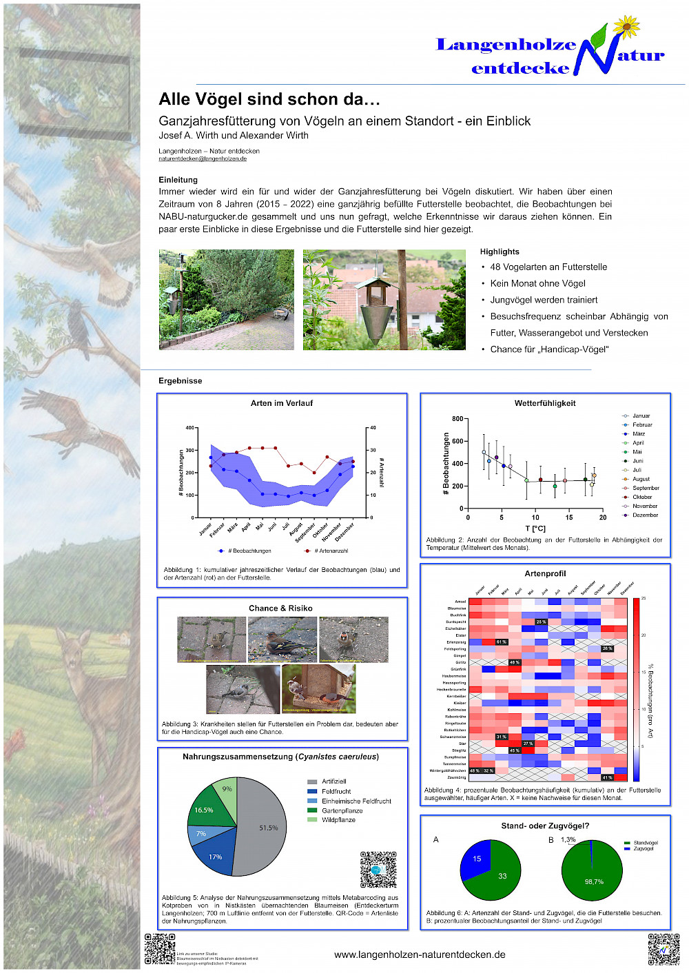 Bereits seit einiger Zeit füttern wir an verschiedenen Stellen ganzjährig unsere heimsichen Vögel. Wir dokumentieren alle Beiobachtungen rund um die Futterstellen so gut es geht bei NABU-naturgucker.de. Kürzlich haben wir erste Ergebnisse aus diesen Daten beim NABU-naturgucker-Kongress in Göttingen vorgestellt. Hier findet Ihr unseren Poster-Beitrag.