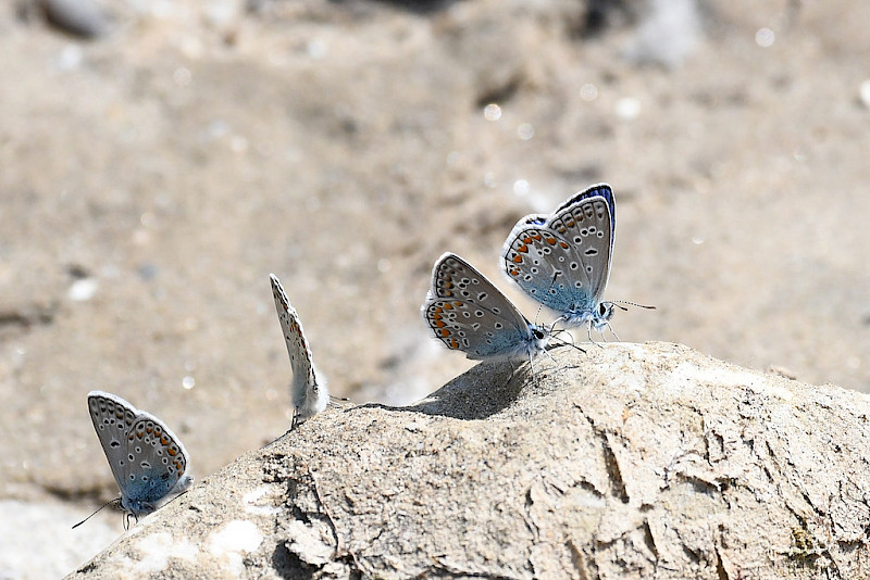 Am Beispiel des Hauhechel-Bläulings für Schmetterlinge, erkennt man die ausgefeilte Technik der Natur sich gegen Hitze zu schützen. Er klappt einfach seine Flügel zusammen und die helle Unterseite reflektiert das Sonnenlicht. Damit ist ein Aufheizen der Flügel minimiert.