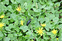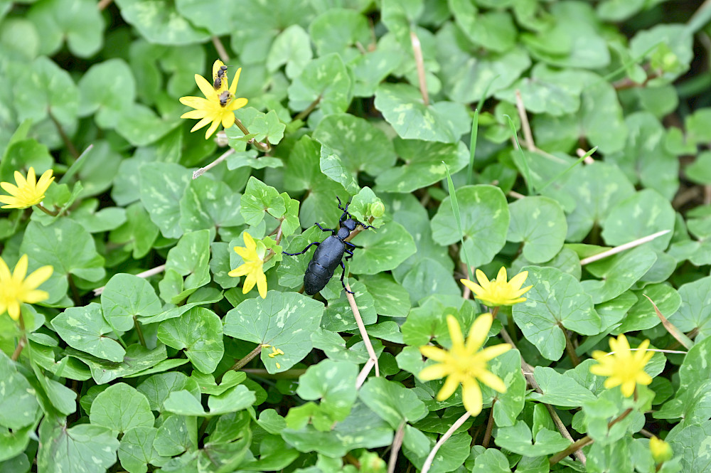 Der schwarzblaue Ölkäfer (Meloe proscarabaeus) (s. Foto) auch schwarzer Maiwurm, Pflasterkäfer, Schmalzkäfer oder „Blasenkäfer“ genannt. Kommt in ganz Europa von April bis Juni vor und auch bei uns im Leinebergland. Das Foto wurde in der Säcker Feldmark aufgenommen. Er war das Insekt des Jahres 2020 und steht in Deutschland auf der Roten Liste gefährdeter Arten. Er ist 11 bis 35 mm lang, sein Chitin-Panzer glänzt am gesamten Körper schwarzblau und er ernährt sich unter anderem von Scharbockskraut, Bärlauch, Buschwindröschen und vielen anderen Blütenpflanzen. Man findet ihn an Wegrändern aber auch Gärten.