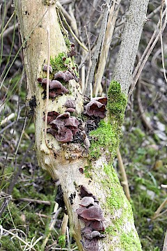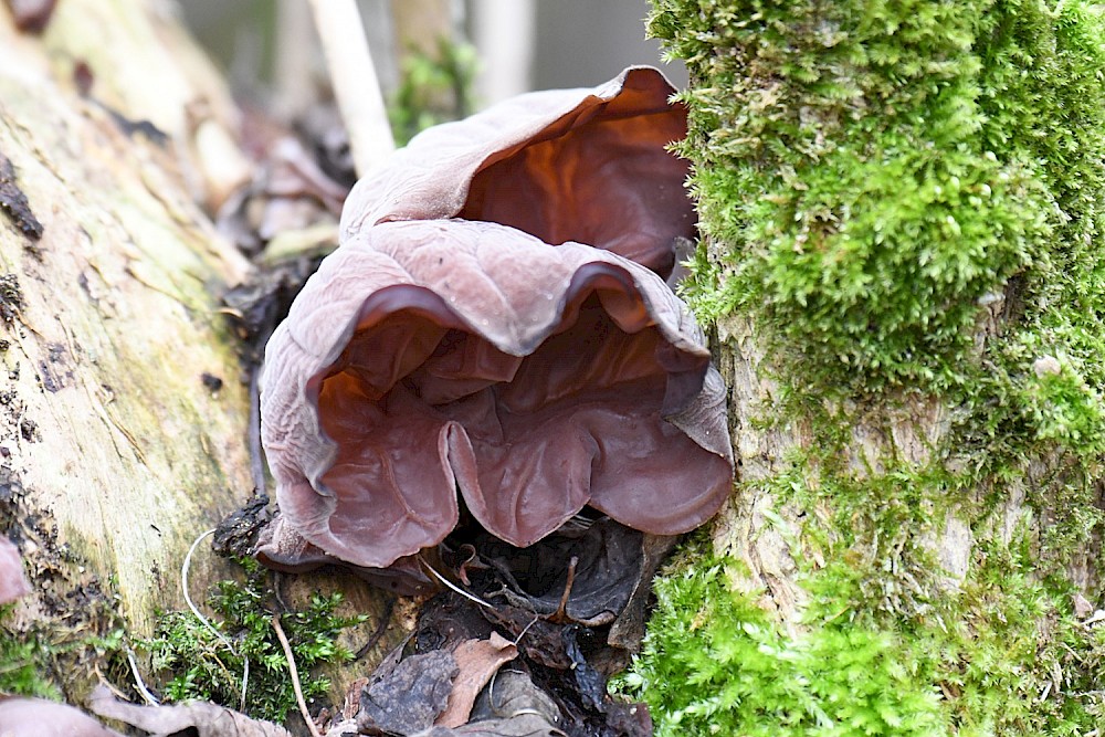 Das Judasohr (Auricularia auricula-judae) findet man das ganze Jahr an lebenden und abgestorbenen Laubhölzern, besonders häufig an Holunder. Sein Aussehen ähnelt einer Ohrmuschel. Sein Name kommt von einer Legende. Nachdem Judas Jesus verraten hatte, habe er sich an einem Holunderbaum erhängt. In der chinesischen Küche kennt man ihn als Mu Err Pilz und darf dort nicht fehlen.