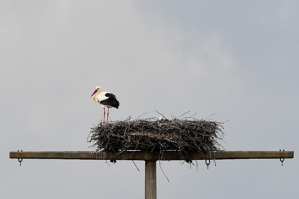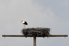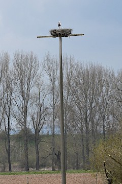 Hier brüten seit Jahren die Weißstörche. Auch dieses Jahr ist das Nest mit einem Storchenpaar seit ein paar Wochen besetzt.